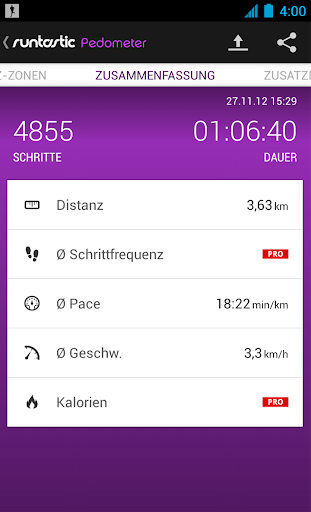 Runtastic Pedometer - heute gratis Pro Funktionen
