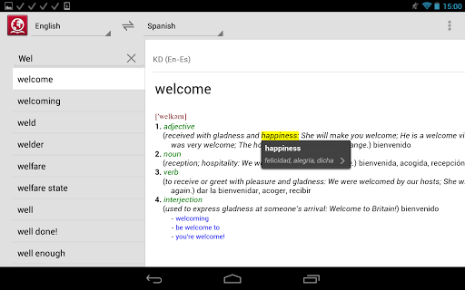 Direkt aus der Applikation heraus können 200 Wörterbücher für 20 Sprachen erworben werden. Weitere Wörterbücher mit exakten Übersetzungen, phonetischen Transkriptionen, Synonymen und Verwendungsbeispielen stehen für die folgenden Sprachkombinationen zur Verfügung: