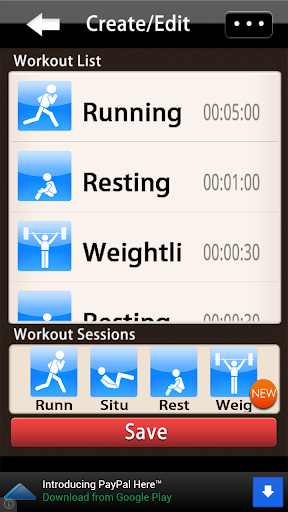 to 3 in free version) of your own workout “playlists” you want; which