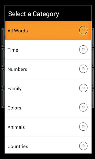 So, if you are learning Italian and your friend wants to improve her French skills - no problem - on the settings page, your friend can select French! Or, if both of you are trying to learn the same language, you can compete with each other to see who learns the words in each category the fastest - and with the fewest errors.