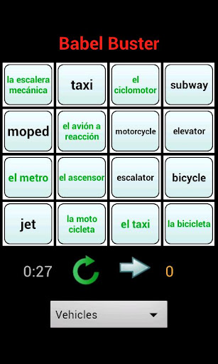With Babel Buster, you can improve your language skills in English, French, Italian, or Spanish. You can select the language you want to learn, the language you already know, and finally, you can select the category of words you are most interested in. Babel Buster will randomize the words and you will match the foreign word to your known language. This app will always pronounce the first word in the language that you want to learn - to help you discover the match and to help you learn how to pronounce each word. To improve the text to speech synthesis, you should consider downloading the free IVONA Text to Speech application.